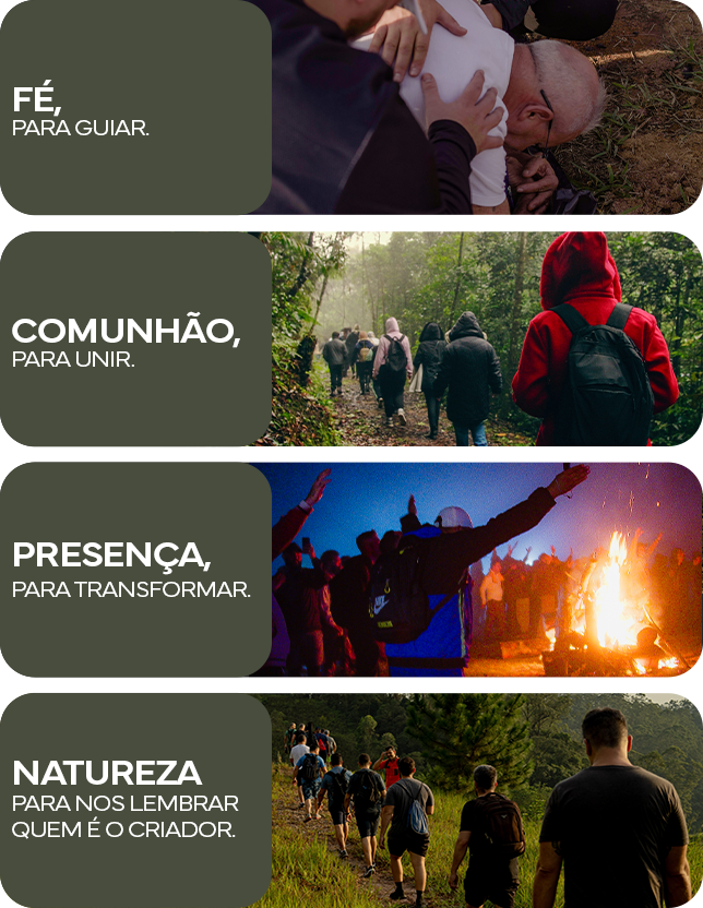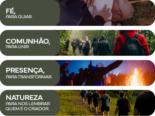 O Encontro no Monte promove experiências espirituais transformadoras para homens e mulheres, fora das quatro paredes, em um ambiente de comunhão, louvor e palavra